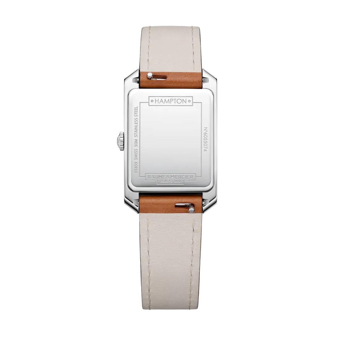 Hampton-línan snýst um tímalausan glæsileika. Einkennandi, ferhyrndur kassinn, innblásinn af Art Deco, er auðþekkjanlegur og eru úrin fullkomin fyrir hvert tækifæri.