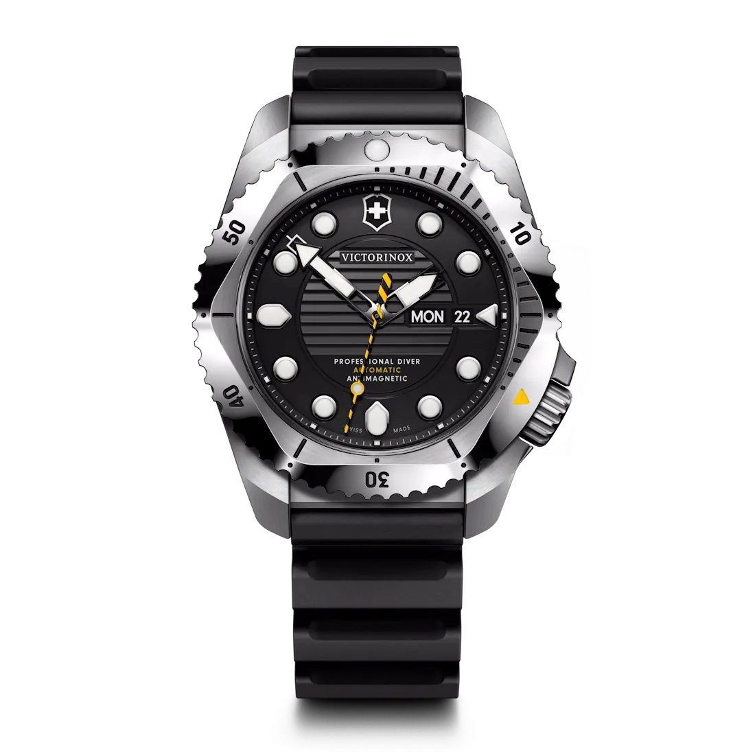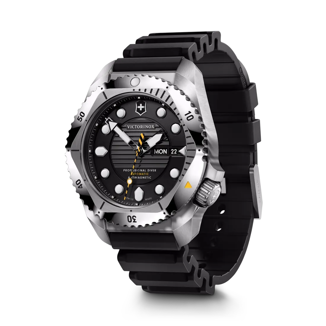 Hvort sem þú kannar hafsbotninn eða þurrt land, ertu fullkomlega undirbúinn með Victorinox Dive Pro, ISO-vottuðum köfunarúrum.