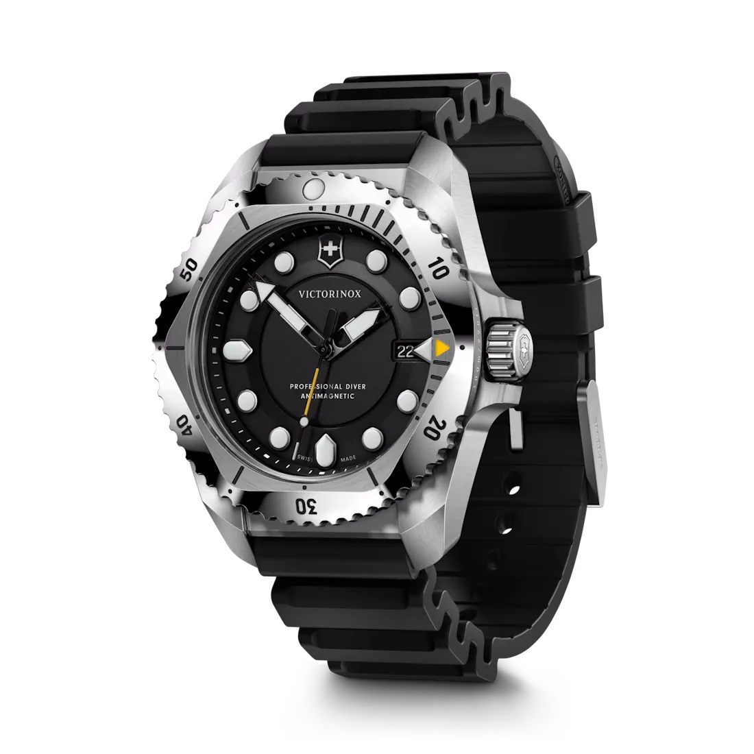 Hvort sem þú kannar hafsbotninn eða þurrt land, ertu fullkomlega undirbúinn með Victorinox Dive Pro, ISO-vottuðum köfunarúrum.